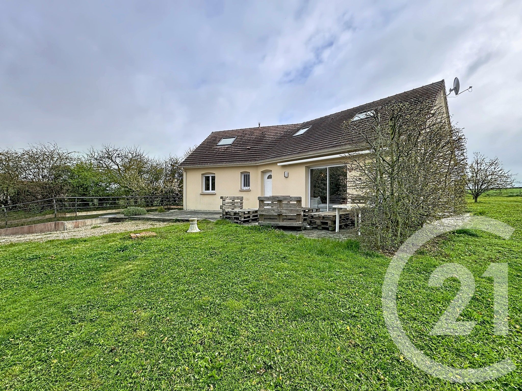 Situé à 3 minutes de TRUN et 10 minutes d'Argentan, pavillon édifié en 2009 qui se compose au rez-de-chaussée d'une vaste pièce de vie d'environ 60 m² avec cuisine ouverte, deux chambres, une salle d'eau, un bureau et un wc.